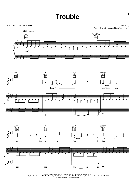 Digital Sheet Music for Trouble by Dave Matthews, Stephen Harris scored for Piano/Vocal/Chords; id:373627