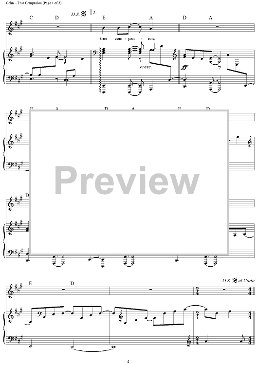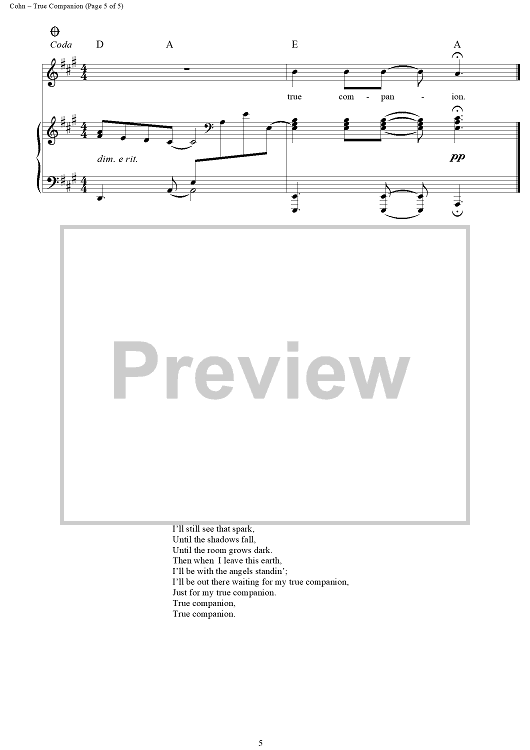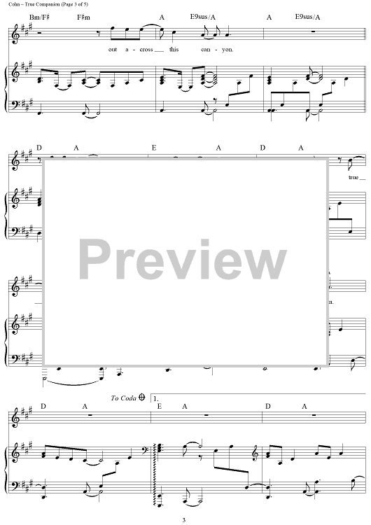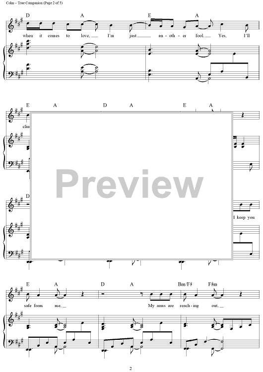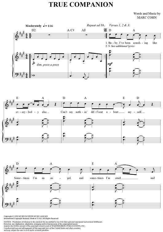Digital Sheet Music for True Companion by Marc Cohn scored for Piano/Vocal/Chords; id:272179