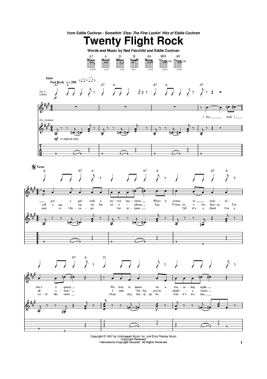 Digital Sheet Music for Twenty Flight Rock by Eddie Cochran, Ned Fairchild, Brian Setzer, The Stray Cats scored for Guitar Tab; id:372856