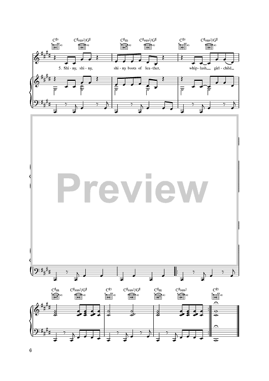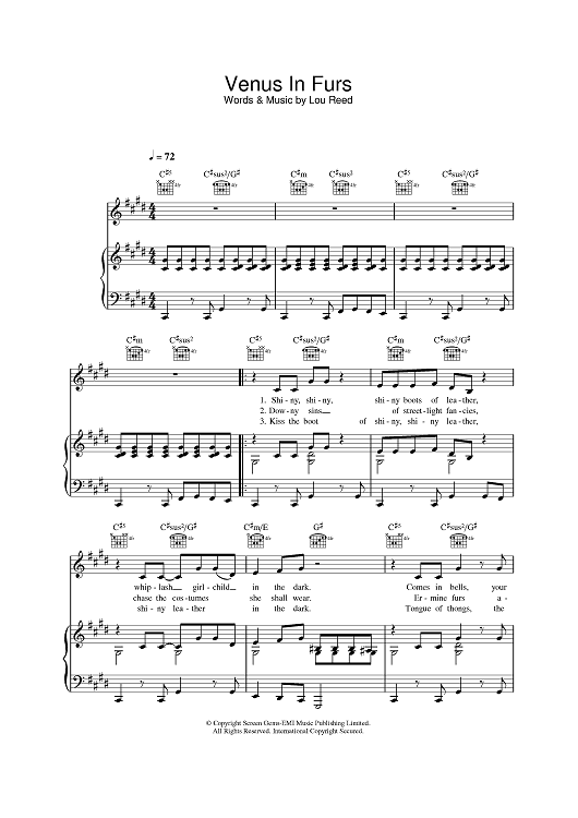 Digital Sheet Music for Venus In Furs by Lou Reed, The Velvet Underground scored for Piano/Vocal/Chords; id:383011