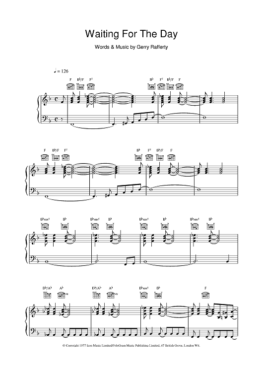 Digital Sheet Music for Waiting For The Day by Gerry Rafferty scored for Piano/Vocal/Chords; id:382455