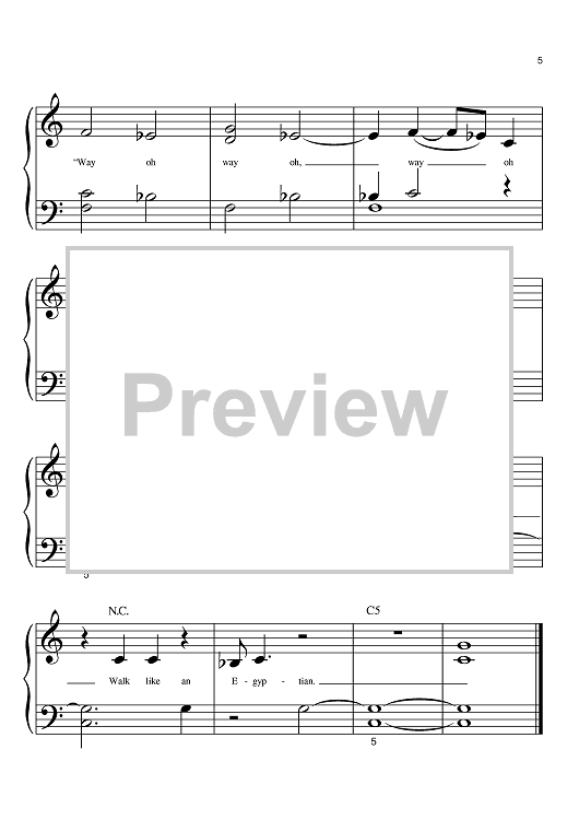 Digital Sheet Music for Walk Like An Egyptian by The Bangles, Liam Sternberg scored for Big Note Piano; id:369337