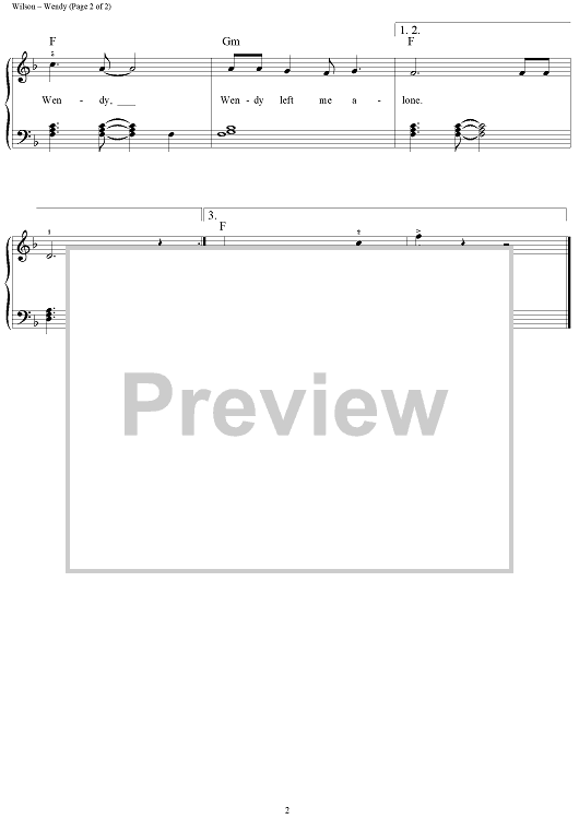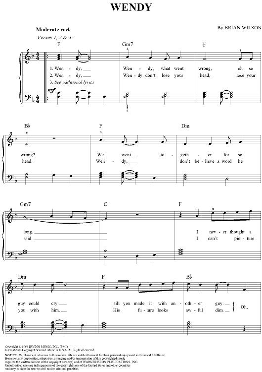 Digital Sheet Music for Wendy by Brian Wilson, The Beach Boys scored for Easy Piano/Vocal; id:154670