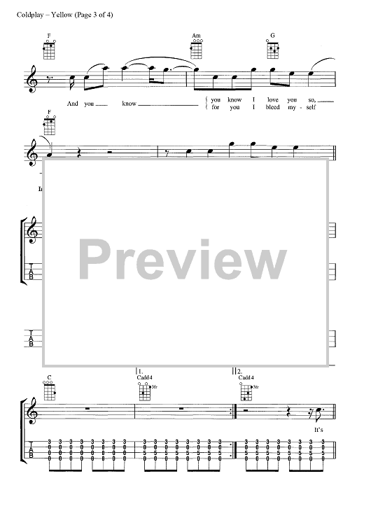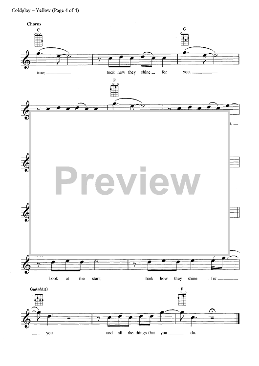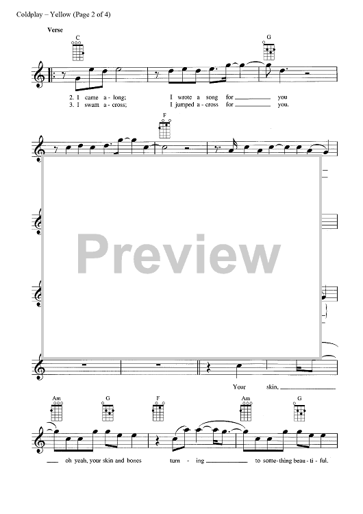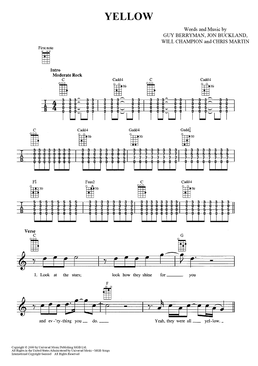 Digital Sheet Music for Yellow by Chris Martin, Coldplay, Jonny Buckland, Guy Berryman scored for Ukulele/Vocal; id:444215