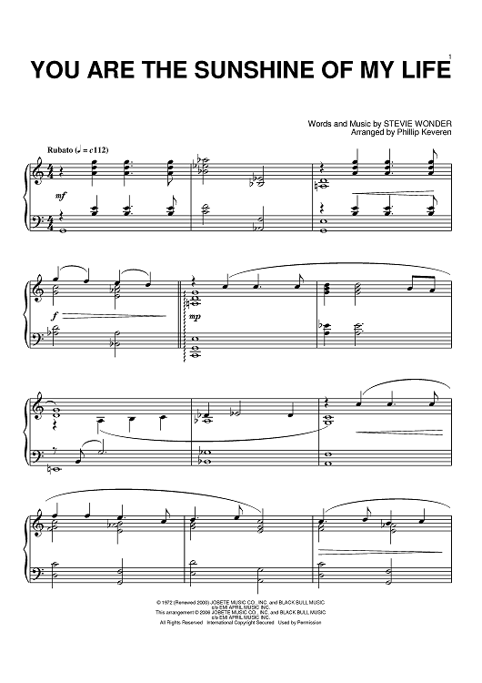 Digital Sheet Music for You Are The Sunshine Of My Life by Stevie Wonder, Phillip Keveren scored for Piano; id:392205