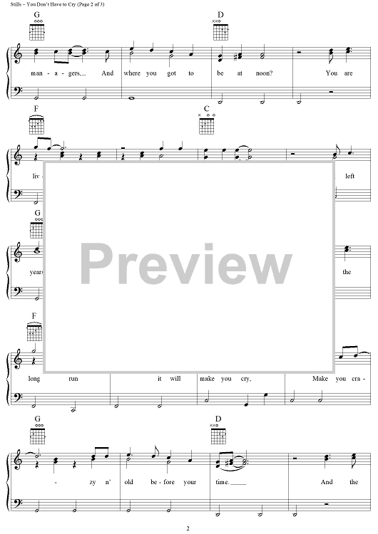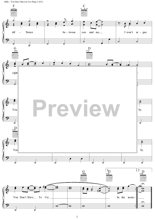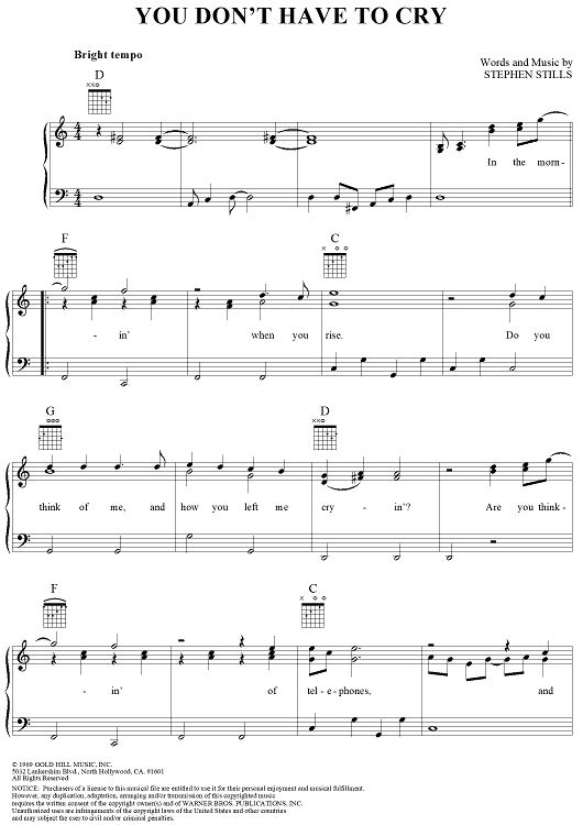 Digital Sheet Music for You Don't Have to Cry by Stephen Stills, Crosby, Stills & Nash scored for Piano/Vocal/Chords; id:259412
