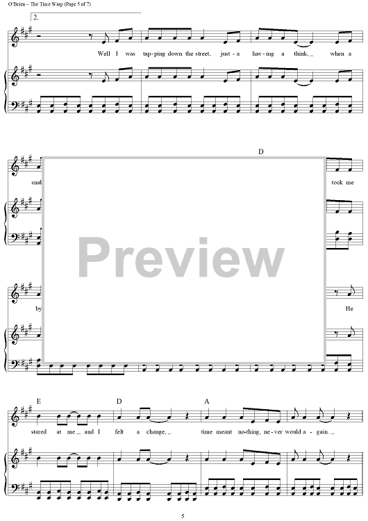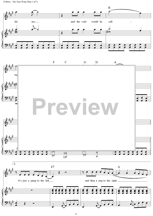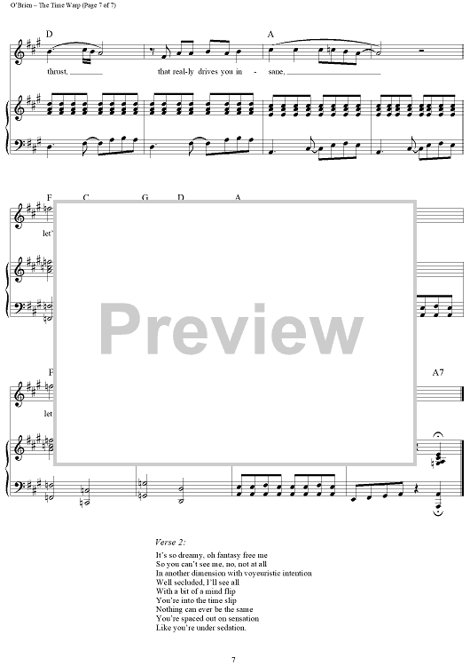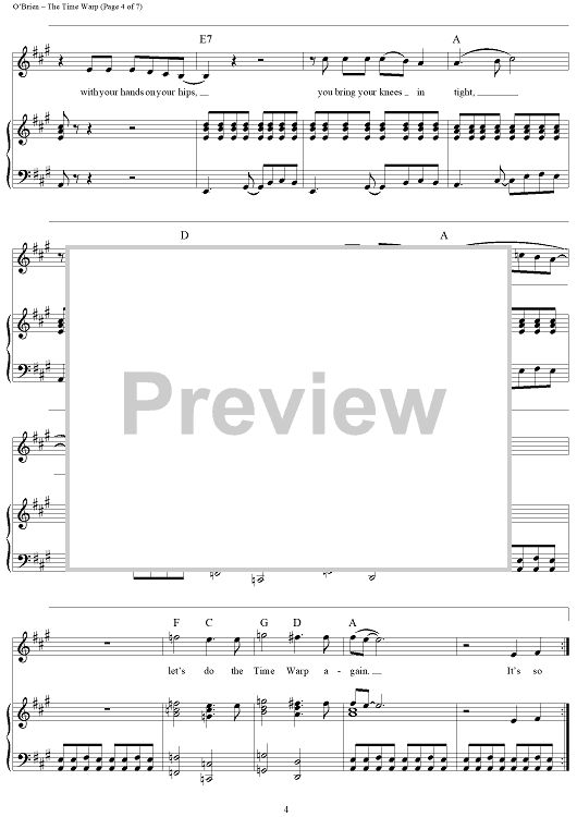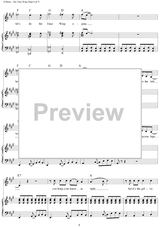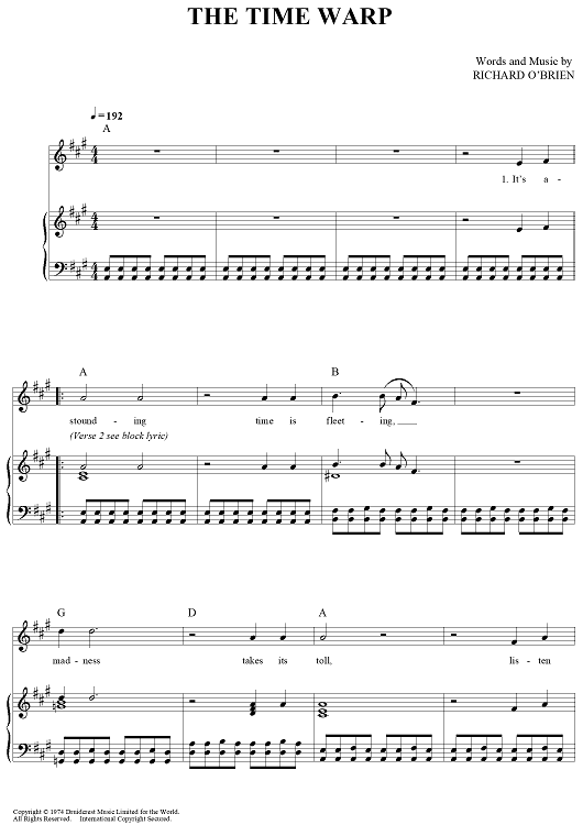 Digital Sheet Music for The Time Warp by Richard O'Brien scored for Piano/Vocal/Chords; id:375724