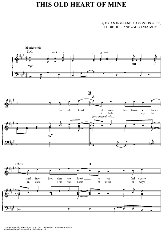 Digital Sheet Music for This Old Heart of Mine by Rod Stewart, Lamont Dozier, Brian Holland, Eddie Holland scored for Piano/Vocal/Chords; id:364059