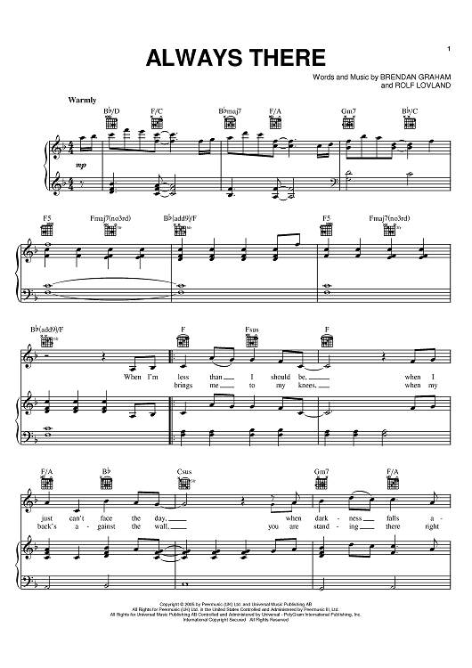 Digital Sheet Music for Always There by Rolf Lovland, Brendan Graham, Secret Garden scored for Piano/Vocal/Chords; id:398293