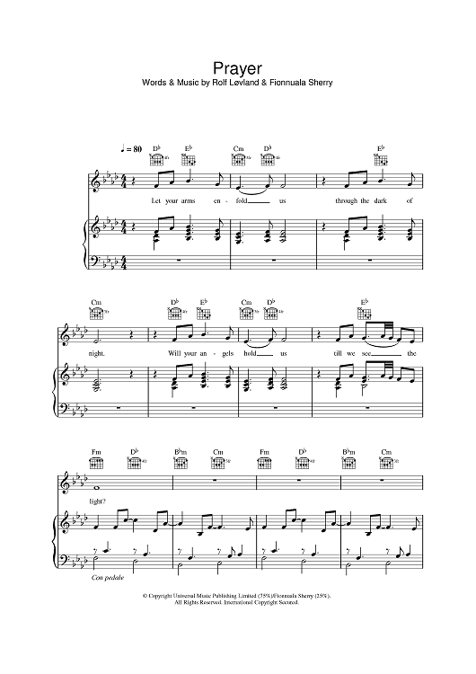 Digital Sheet Music for Prayer by Rolf Lovland, Fionnuala Sherry, Hayley Dee Westenra scored for Piano/Vocal/Chords; id:389252