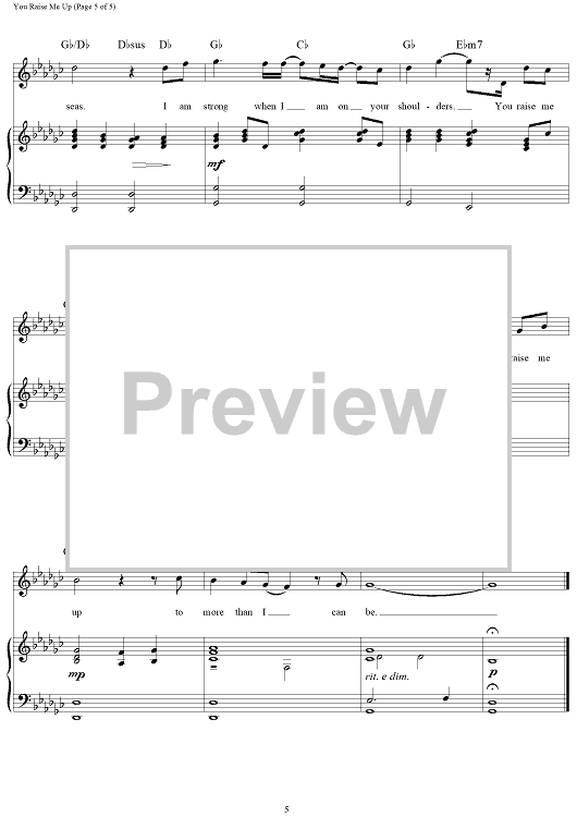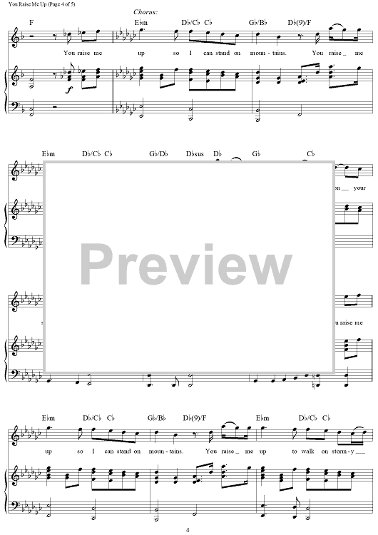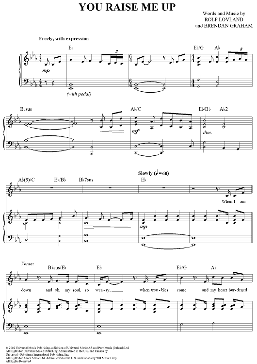 Digital Sheet Music for You Raise Me Up by Rolf Lovland, Josh Groban, Brendan Graham scored for Piano/Vocal/Chords; id:304562
