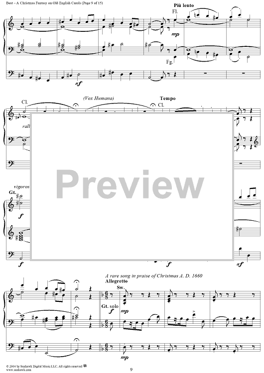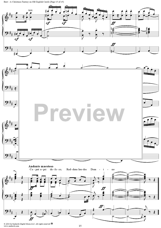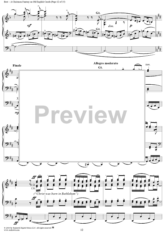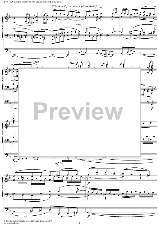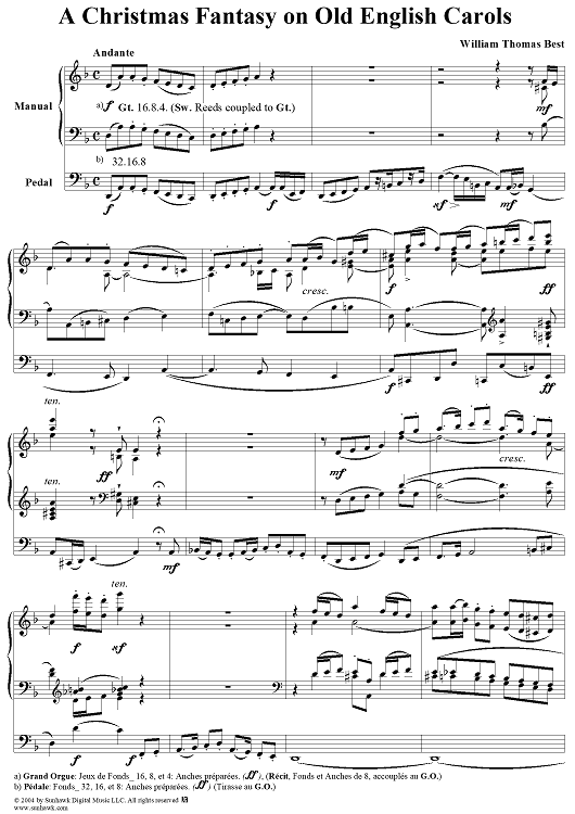 Digital Sheet Music for A Christmas Fantasy on Old English Carols by William Thomas Best scored for Organ Solo; id:303544