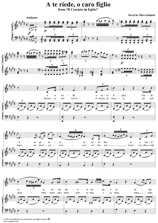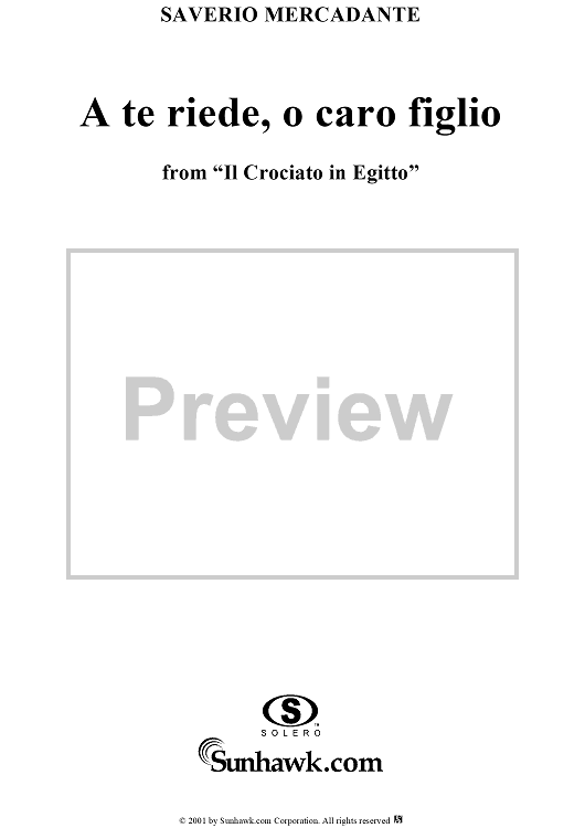 Digital Sheet Music for A te riede, o caro figlio, from "Il Crociato in Egitto" by Saverio Mercadante scored for Voice/Piano; id:273453