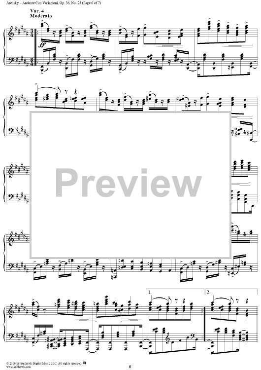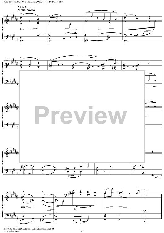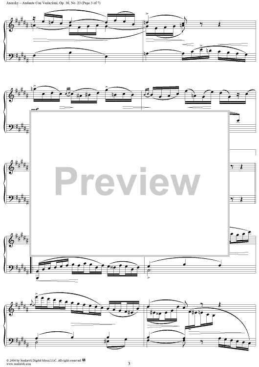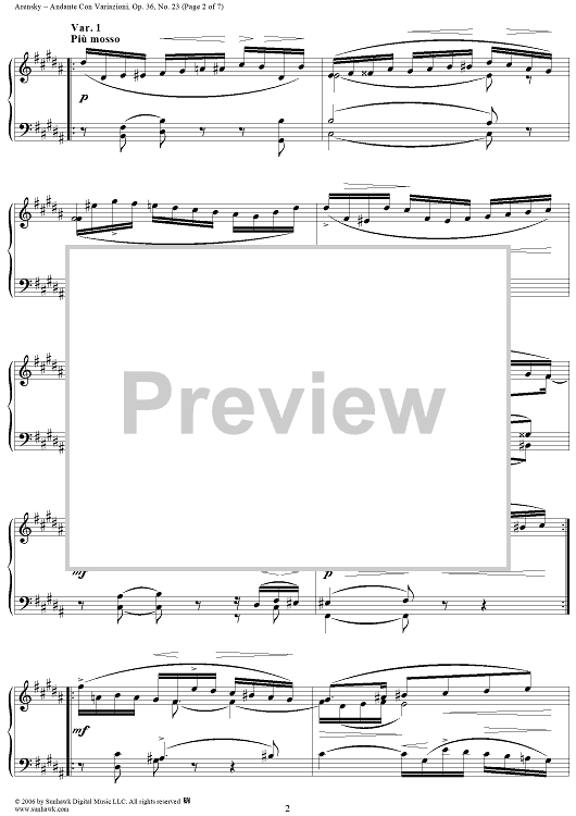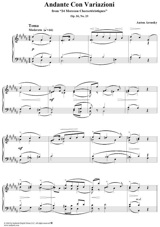 Digital Sheet Music for Andante Con Vahiazioni, No. 23 from "Twenty Four Morceau Characteristiques", Op. 36 by Anton Arensky scored for Piano Solo; id:318092
