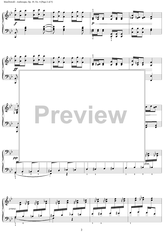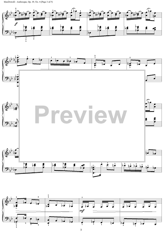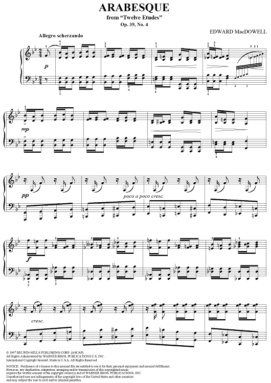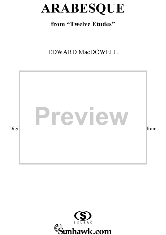 Digital Sheet Music for Arabesque from "Twelve Etudes" by Edward MacDowell scored for Piano Solo; id:251830