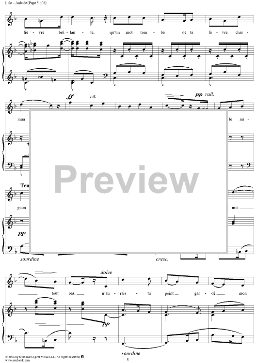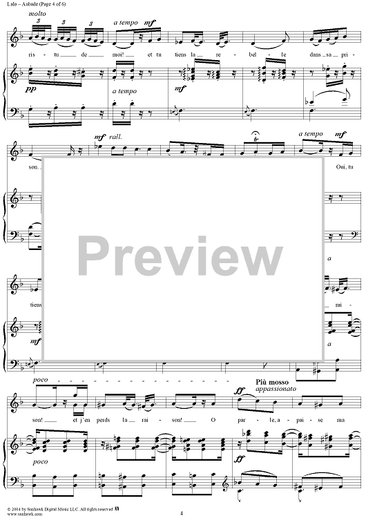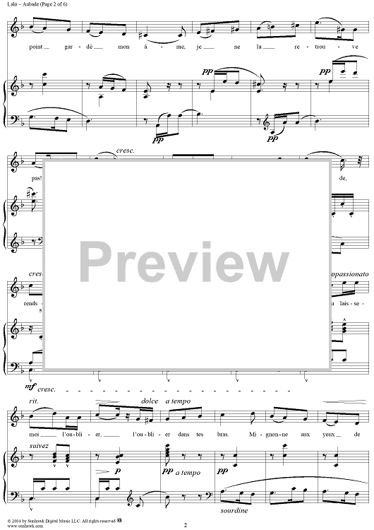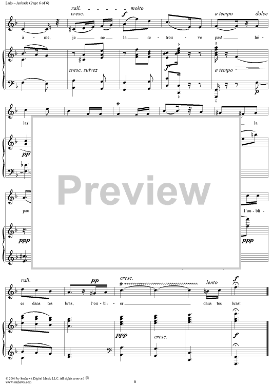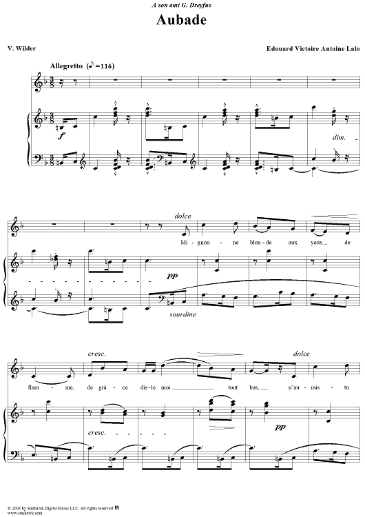 Digital Sheet Music for Aubade by Edouard Victoire Antoine Lalo, Victor Wilder scored for Voice/Piano; id:298176