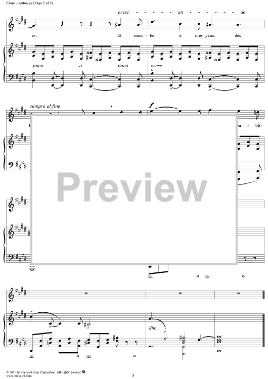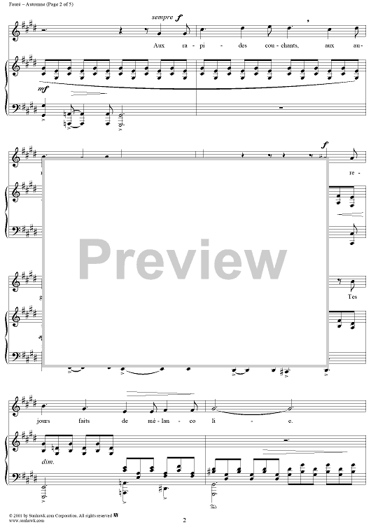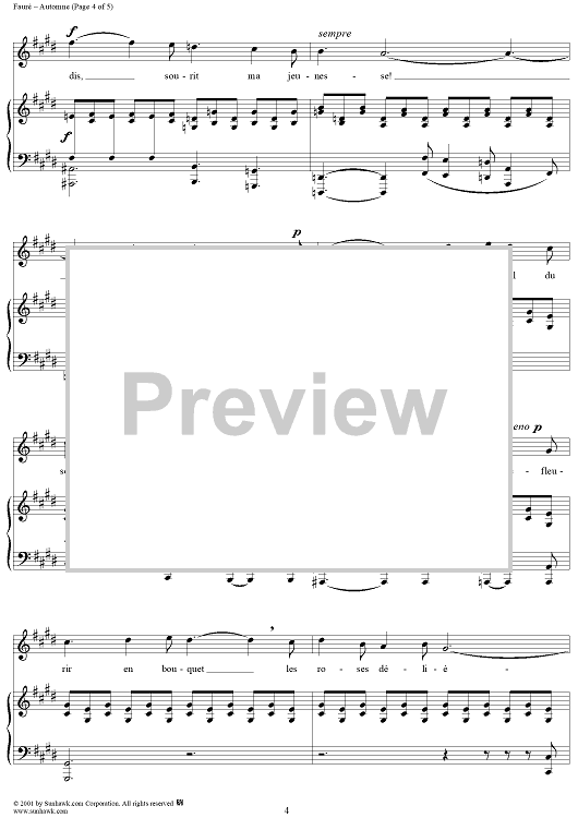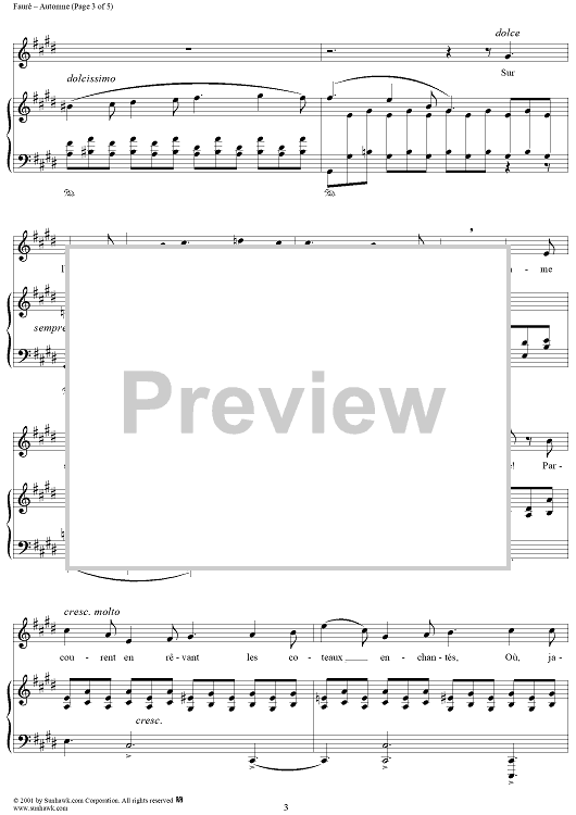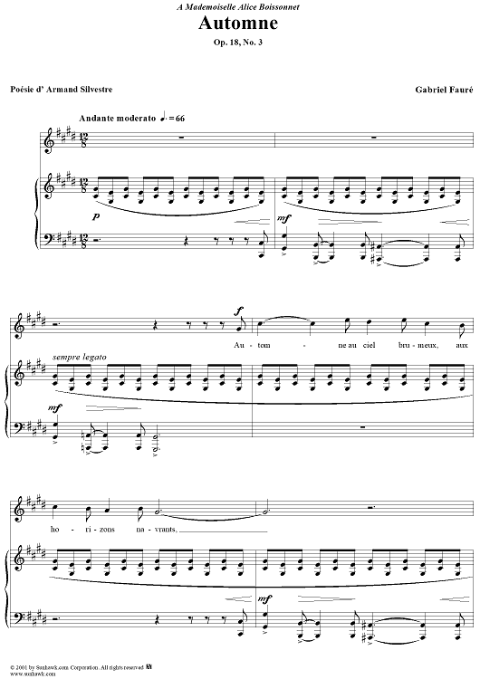 Digital Sheet Music for Automne by Gabriel Fauré, Armand Silvestre scored for Voice/Piano; id:189379