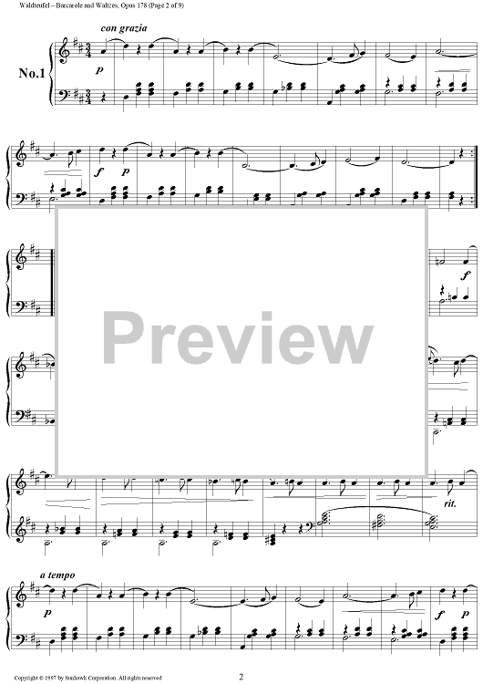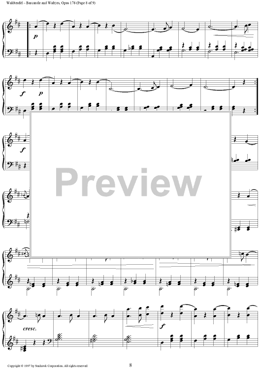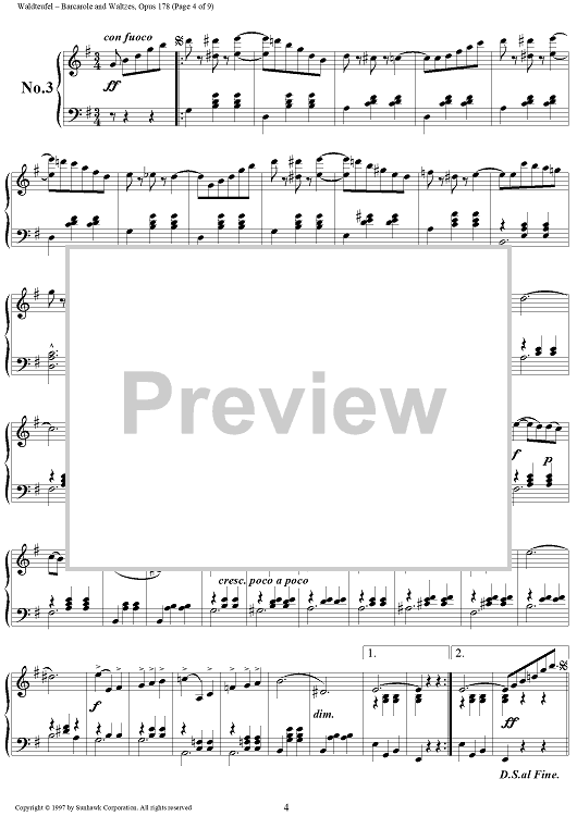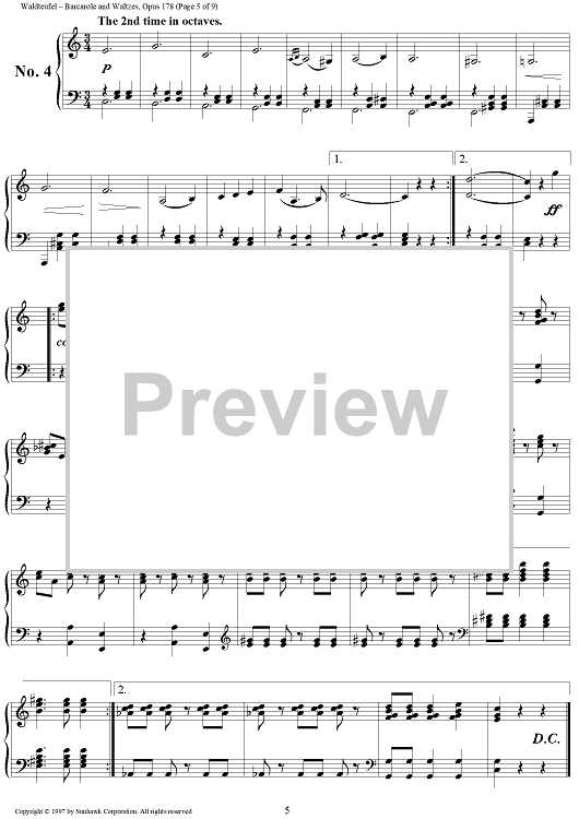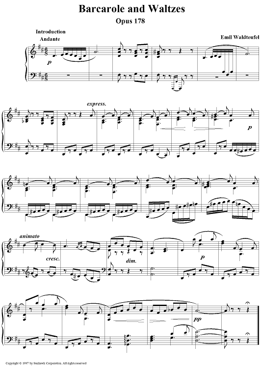 Digital Sheet Music for Barcarole and Waltzes, Op. 178 by Emile Waldteufel scored for Piano Solo; id:94857