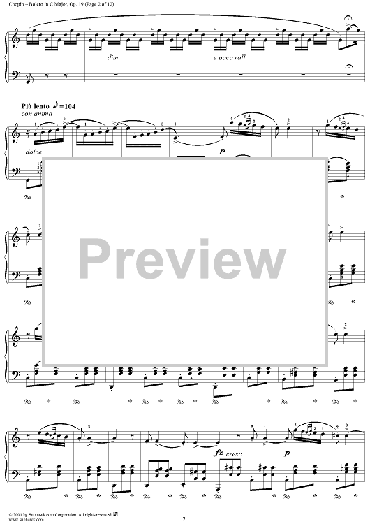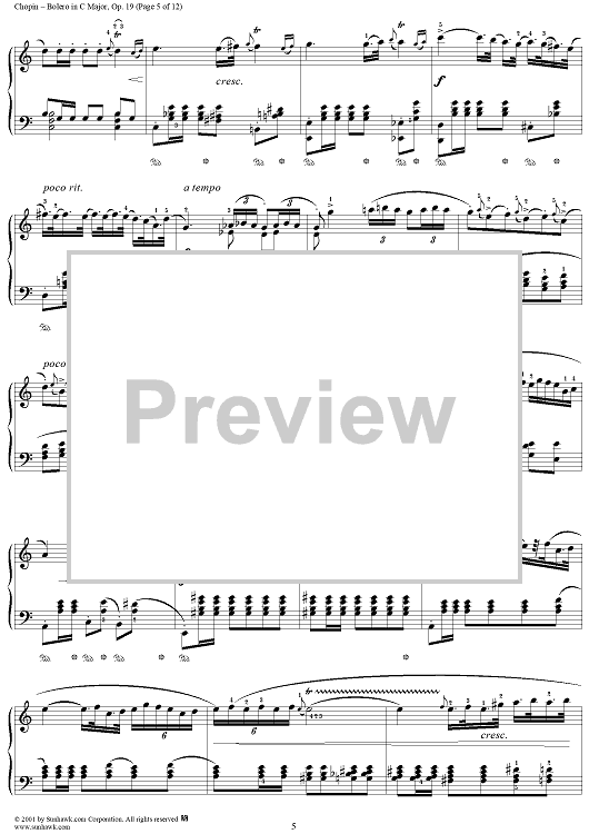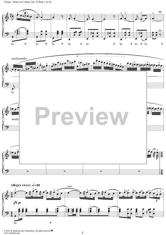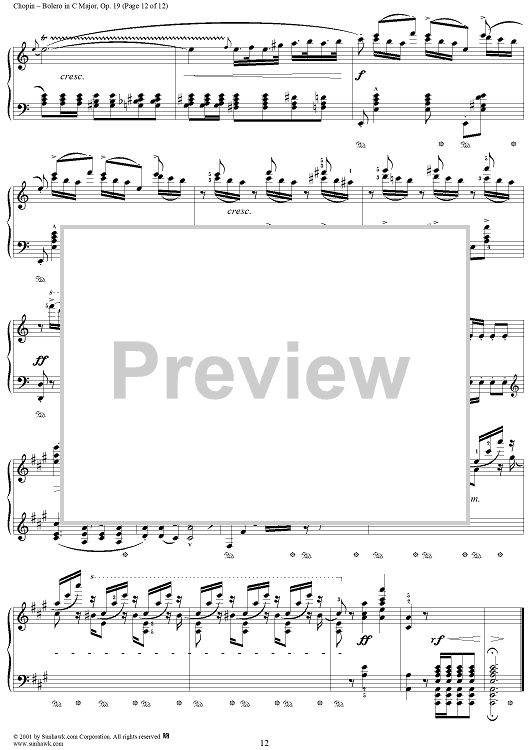 Digital Sheet Music for Bolero in C Major/A Major, Op. 19, B81 by Frederic Chopin scored for Piano Solo; id:272843