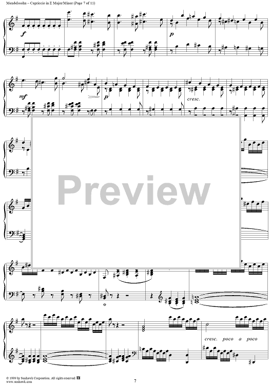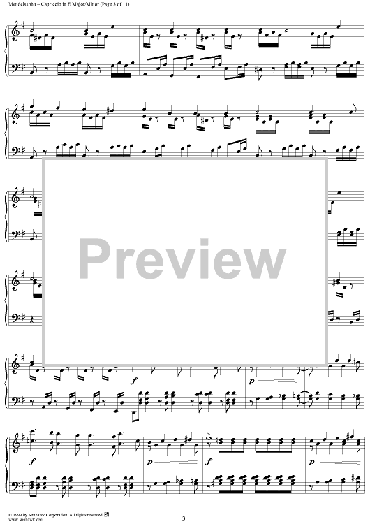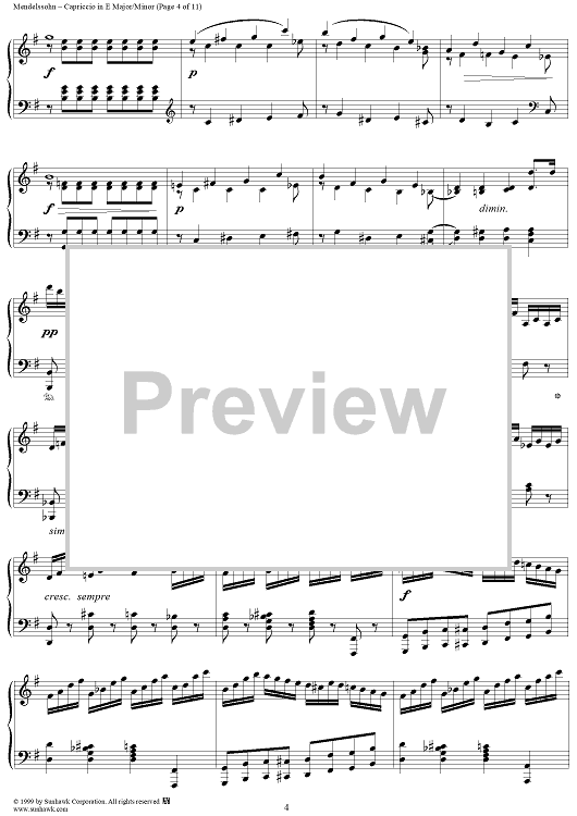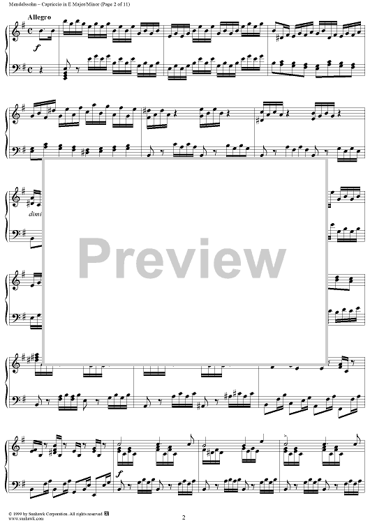 Digital Sheet Music for Capriccio in E Major/Minor, Op. 118 by Felix Mendelssohn scored for Piano Solo; id:118259