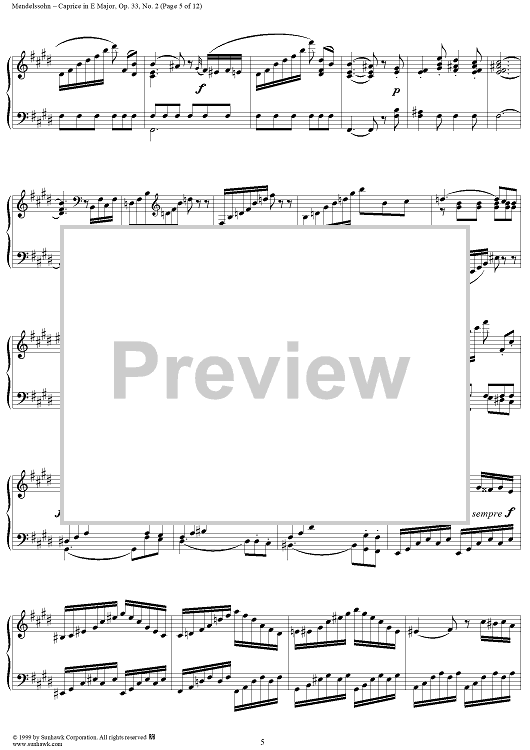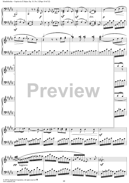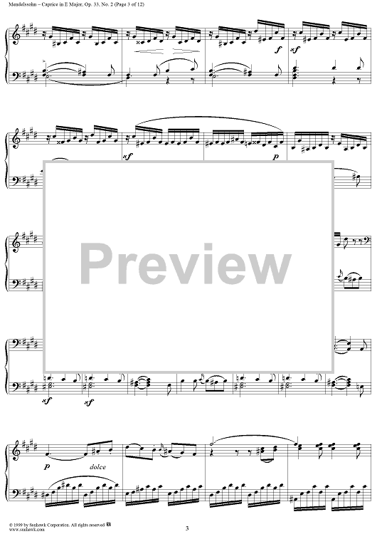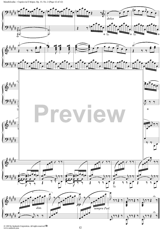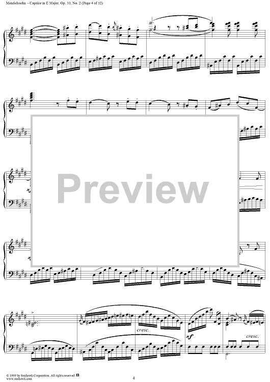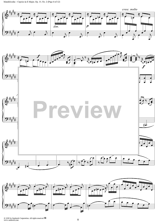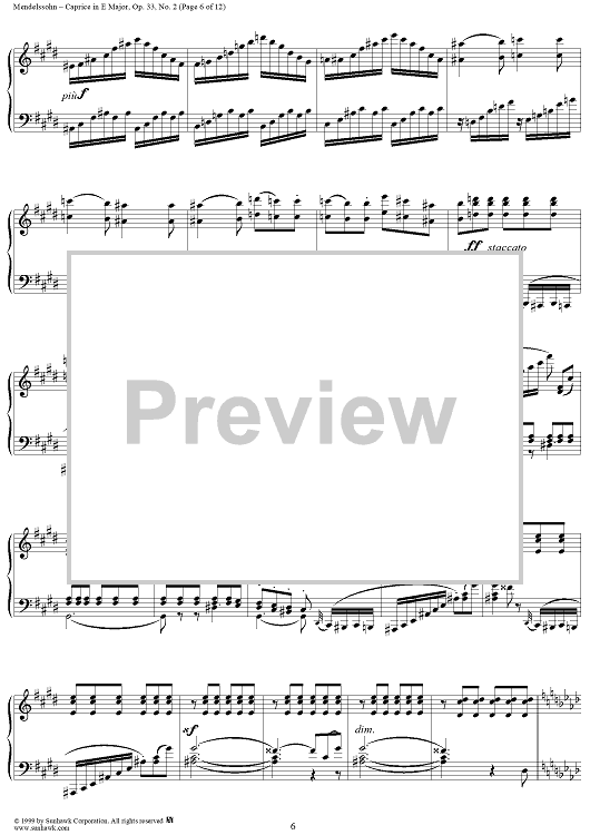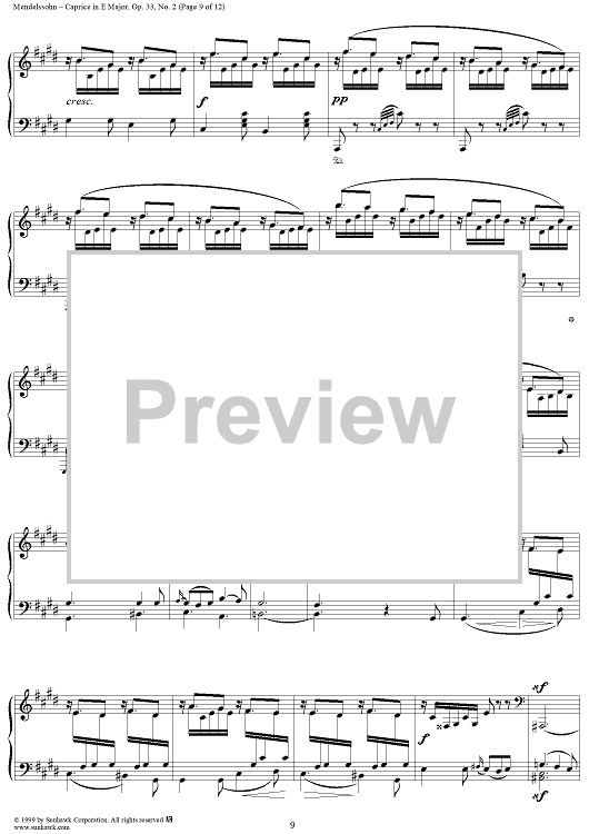 Digital Sheet Music for Caprice No. 2 in E Major, Op. 33, No. 2 by Felix Mendelssohn scored for Piano Solo; id:113354