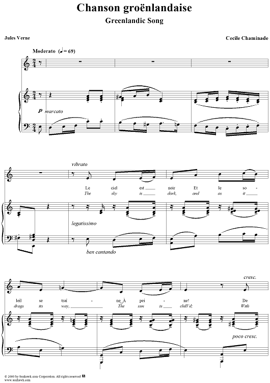 Digital Sheet Music for Chanson groënlandaise (Greenlandic Song) by Cécile Chaminade, Jules Verne scored for Voice/Piano; id:273956