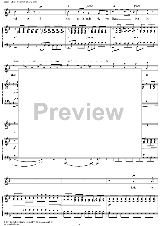 Digital Sheet Music for Chant d'amour by Georges Bizet, A. de Lamartine scored for Voice/Piano; id:305220
