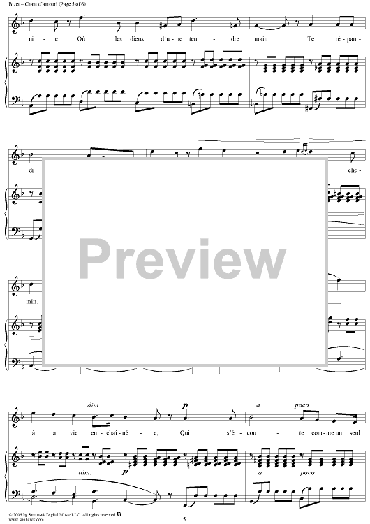 "Chant d'amour" Sheet Music by Georges Bizet