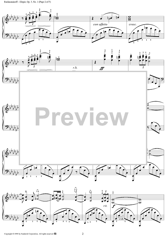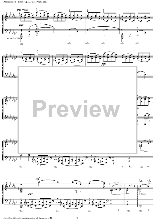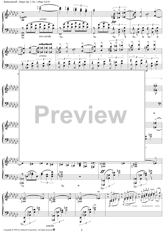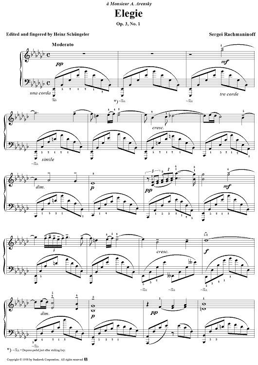 Digital Sheet Music for Cinq morceaux de fantaisie, op. 3, no. 1: Elegie by Sergei Rachmaninoff scored for Piano Solo; id:95475