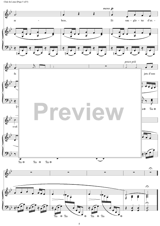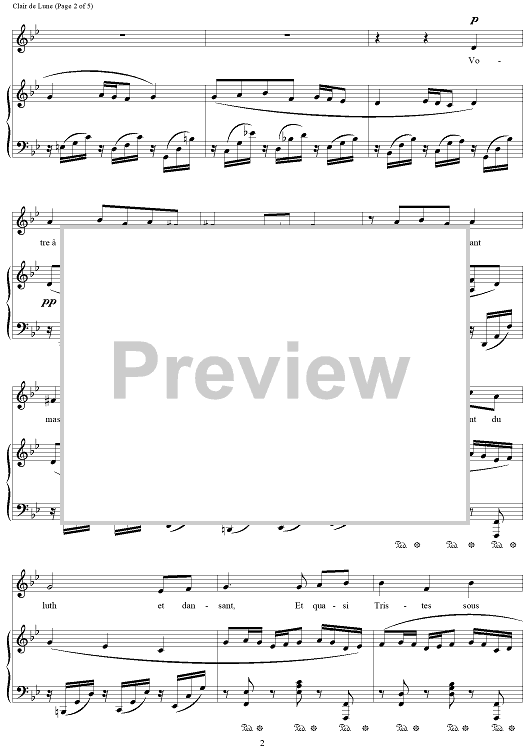 Digital Sheet Music for Clair de Lune (Menuet) (Low voice) by Paul Verlaine, Gabriel Fauré scored for Voice/Piano; id:501660