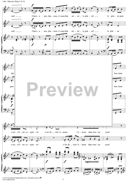 Digital Sheet Music for Dansons!, Op. 35 by Edouard Victoire Antoine Lalo scored for Voice/Piano; id:298182