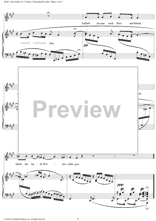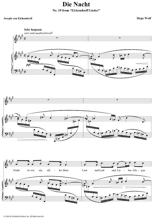 Digital Sheet Music for Die Nacht, No. 19 from "Eichendorff Lieder" by Joseph von Eichendorff, Hugo Wolf scored for Voice/Piano; id:318866