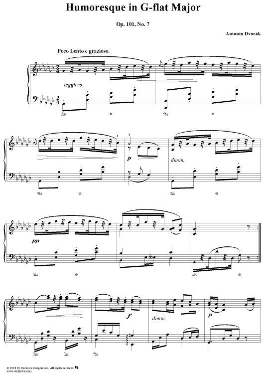 Digital Sheet Music for Eight Humoresques, op. 101, no. 7: Poco Lento e grazioso by Antonín Dvorák scored for Piano Solo; id:110908