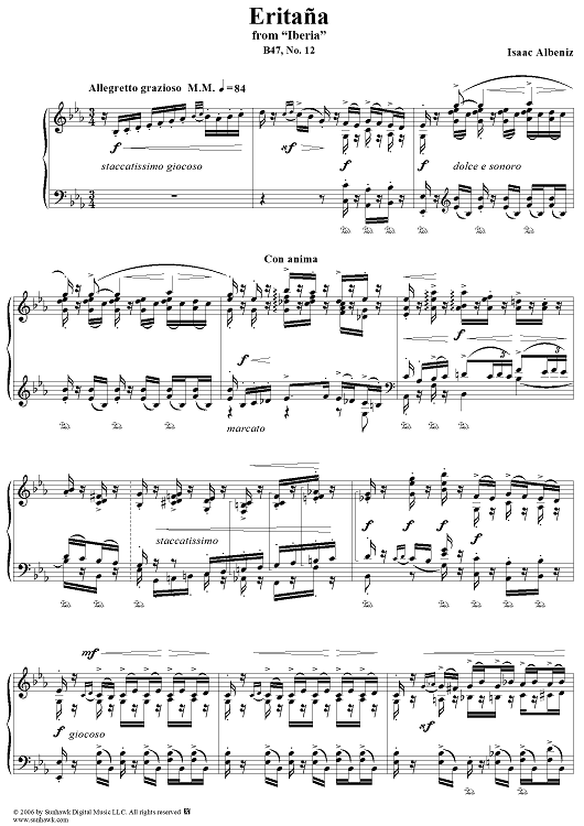 Digital Sheet Music for Eritana by Isaac Albéniz scored for Piano Solo; id:315324