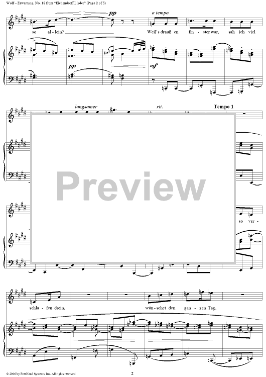 Digital Sheet Music for Erwartung, No. 18 from "Eichendorff Lieder" by Joseph von Eichendorff, Hugo Wolf scored for Voice/Piano; id:318865