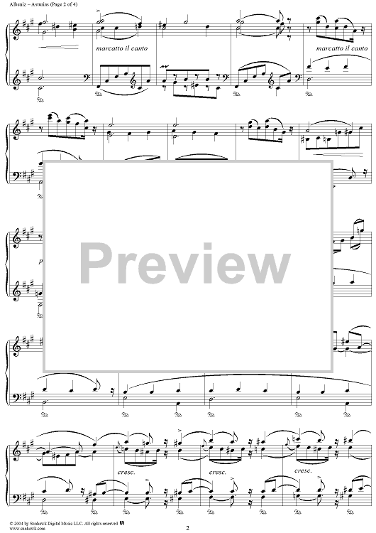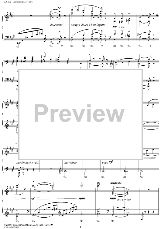 Digital Sheet Music for Espagne (Souvenirs): No. 2, Asturies, B45 by Isaac Albéniz scored for Piano Solo; id:296586