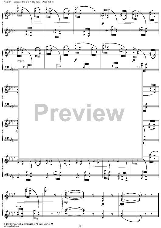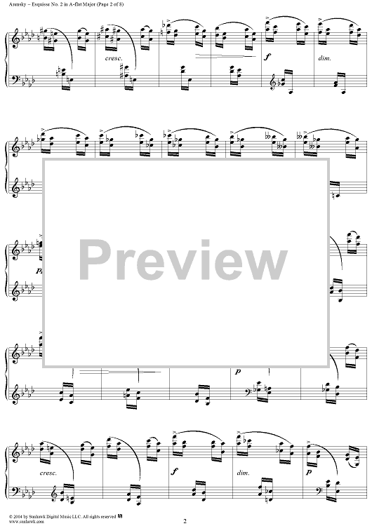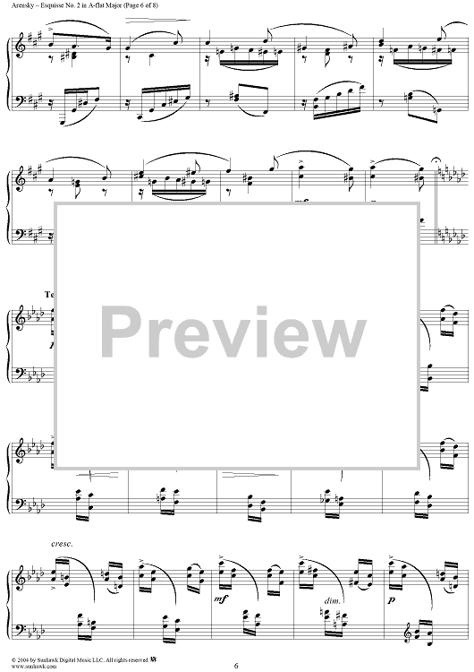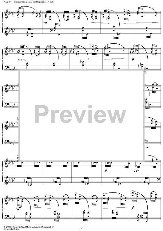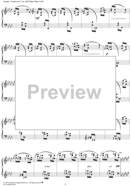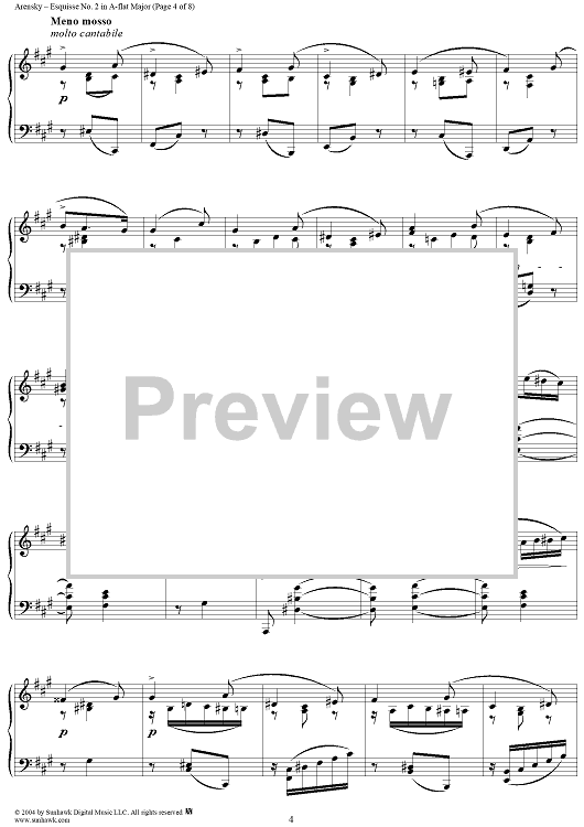 Digital Sheet Music for Esquisse No. 2 in A-flat Major, from "Trois Esquisses", Op. 24 by Anton Arensky scored for Piano Solo; id:295253