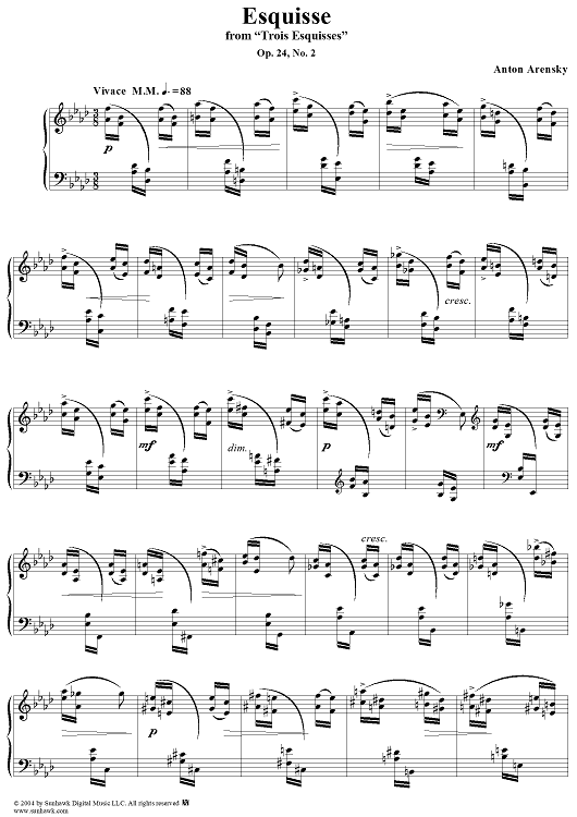 "Esquisse No. 2 in A-flat Major, from "Trois Esquisses", Op. 24" Sheet Music by Anton Arensky