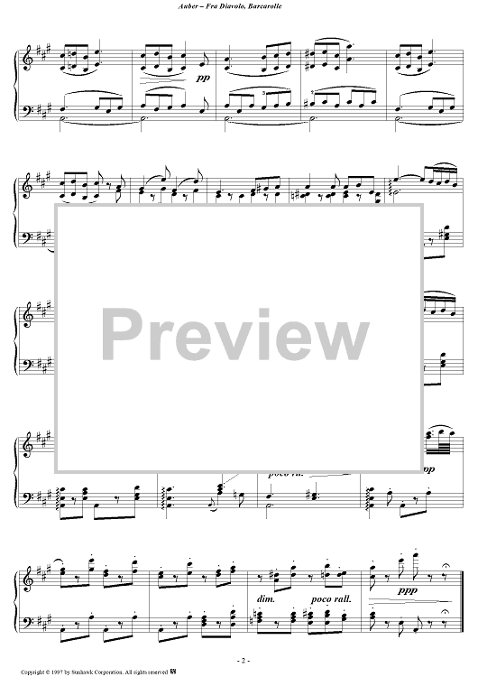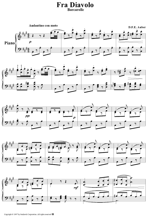 Digital Sheet Music for Fra Diavolo, act 2: Barcarolle by Daniel Auber scored for Piano Solo; id:94653