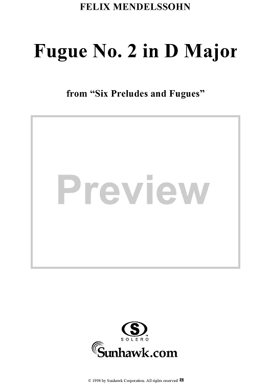 Digital Sheet Music for Fugue no. 2 in D major by Felix Mendelssohn scored for Piano Solo; id:113361