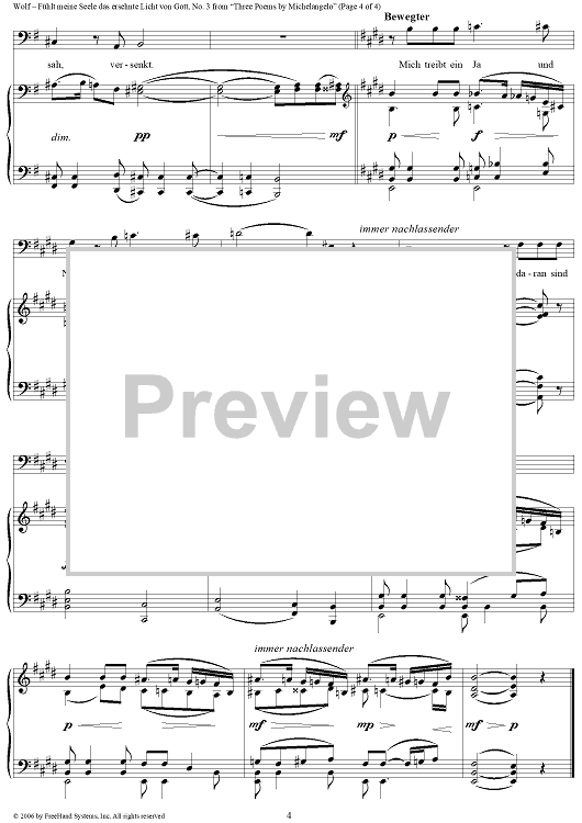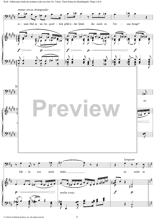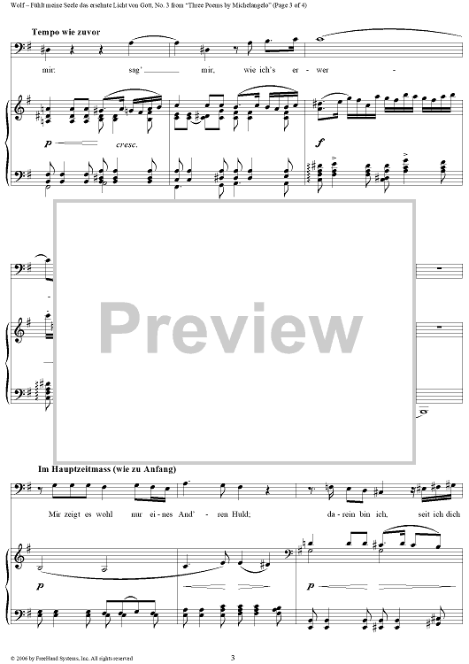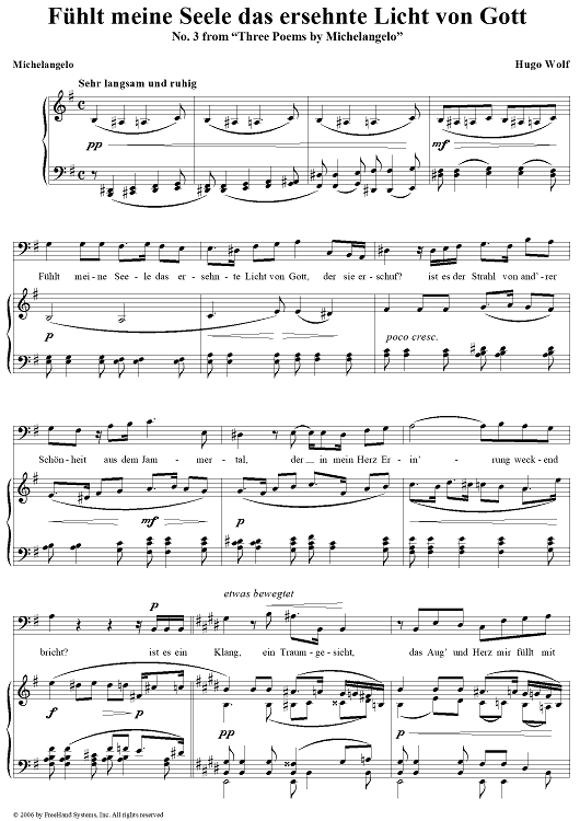 Digital Sheet Music for Fühlt meine Seele das ersehnte Licht von Gott, No. 3 from "3 Poems by Michelangelo" by Hugo Wolf, Michelangelo scored for Voice/Piano; id:318800