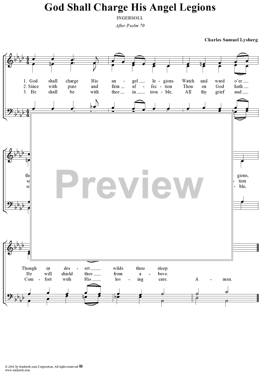 Digital Sheet Music for God Shall Charge His Angel Legions by C. S. Lysberg scored for Four-part Mixed Chorus; id:267165