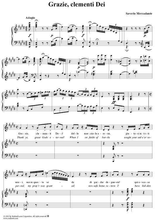 Digital Sheet Music for Grazie, clementi Dei, from "Il Crociato in Egitto" by Saverio Mercadante scored for Voice/Piano; id:273305