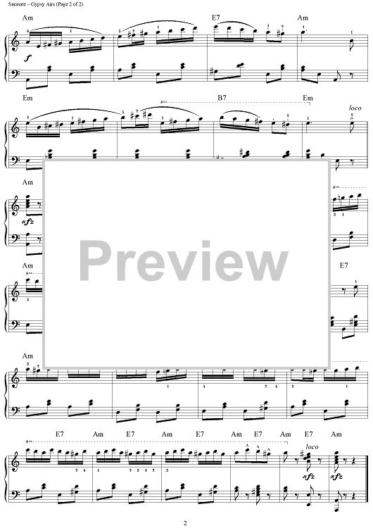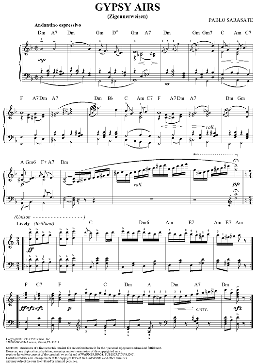 Digital Sheet Music for Gypsy Airs by Pablo de Sarasate scored for Piano Solo; id:256023