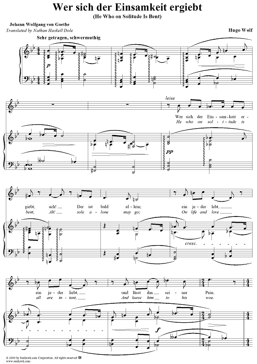 Digital Sheet Music for Harfenspieler, 1: Wer sich der Einsamkeit ergiebt, No. 1 from "Goethe Lieder" by Johann Wolfgang von Goethe, Hugo Wolf scored for Voice/Piano; id:263254