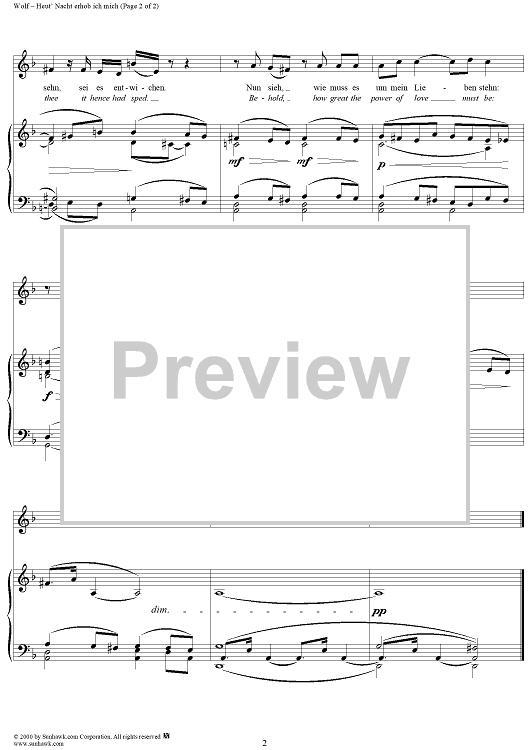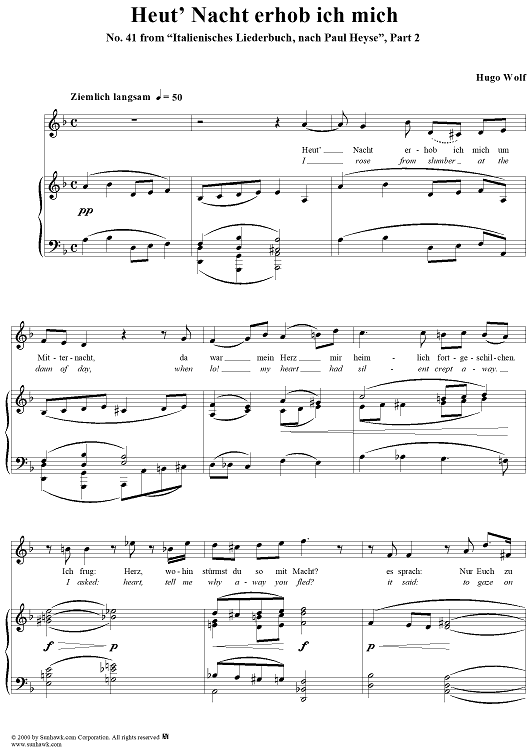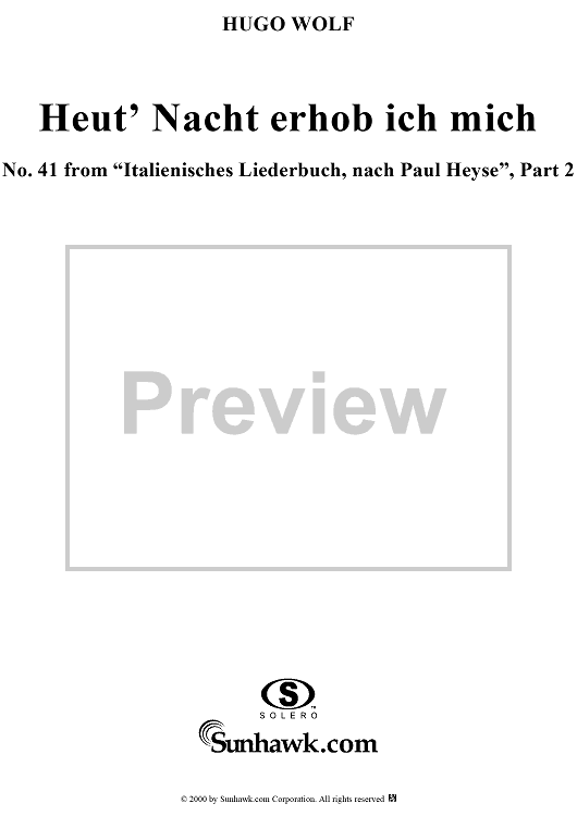 Digital Sheet Music for Heut' Nacht erhob ich mich um Mitternacht, No. 41 from "Italienisches Liederbuch, nach Paul Heyse", Part 2 by Hugo Wolf scored for Voice/Piano; id:262768
