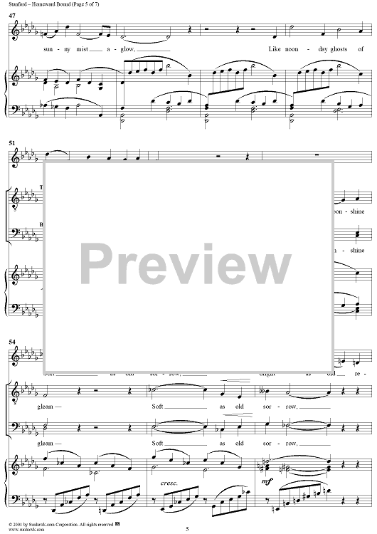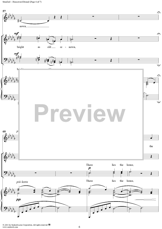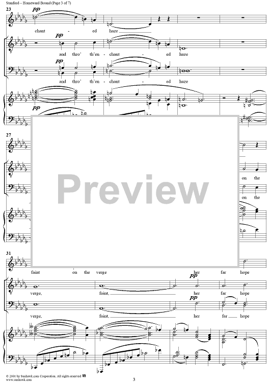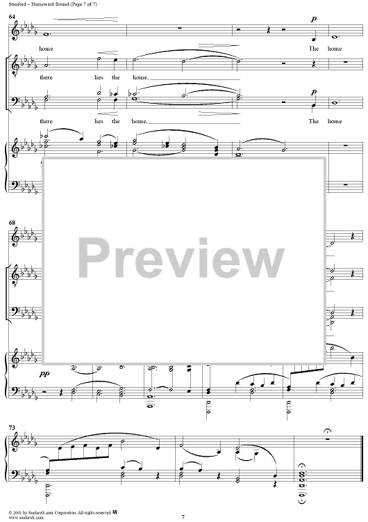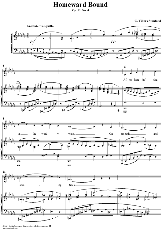 Digital Sheet Music for Homeward Bound, Op. 91, No. 4 by Charles Villiers Stanford scored for Piano/Vocal; id:271998