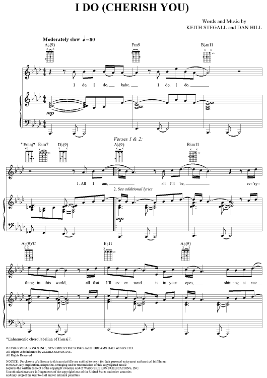 Digital Sheet Music for I Do (Cherish You) by Dan Hill, 98 Degrees, Keith Stegall scored for Piano/Vocal/Chords; id:289829
