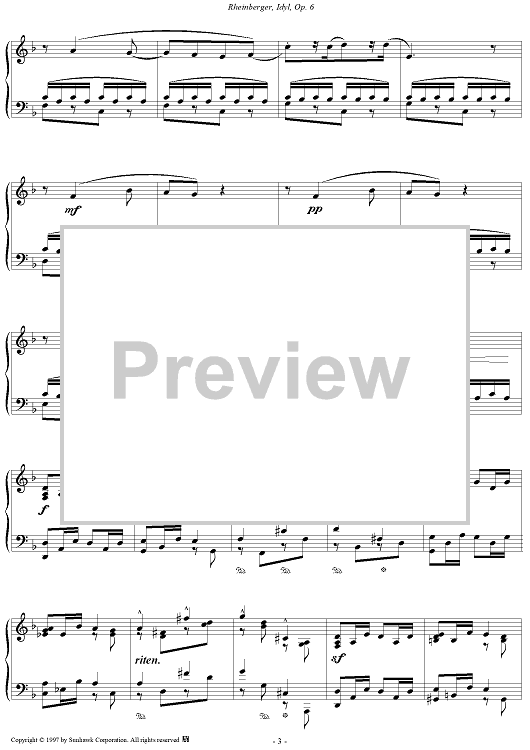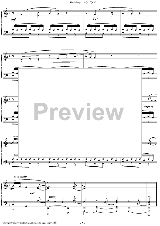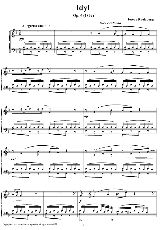 Digital Sheet Music for Idyl by Joseph Rheinberger scored for Piano Solo; id:94449