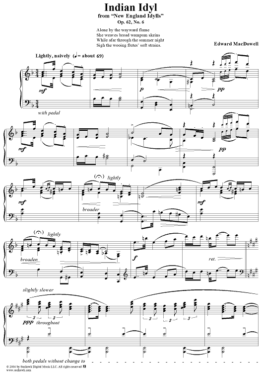 Digital Sheet Music for Indian Idyl, Op. 62, No. 6 by Edward MacDowell scored for Piano Solo; id:295517